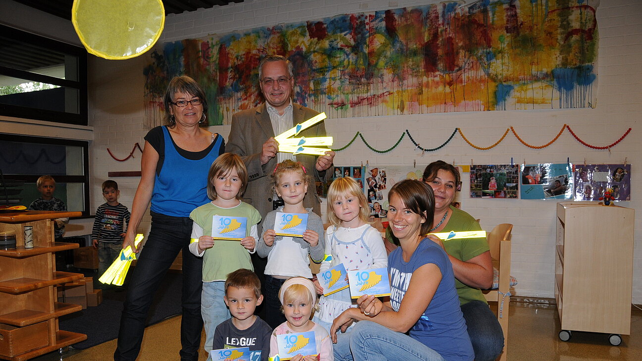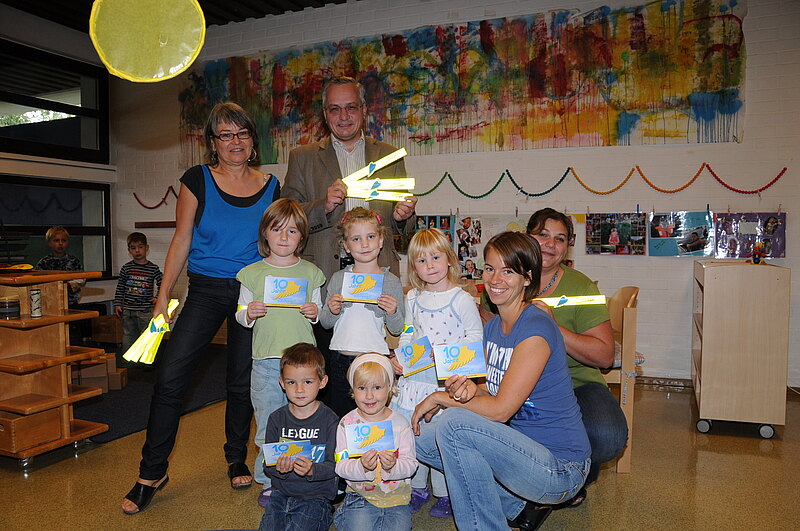 Zum 10. Jahrestag der Aktion Schutzengel – 10 Jahre Sicherheit und Schutz für unsere Kinder besuchte Bürgermeister Ferdinand Köck den Gumpoldskirchner Kindergarten, um dort die Broschüre mit Aufkleber und Reflektoren für die Kleinen.