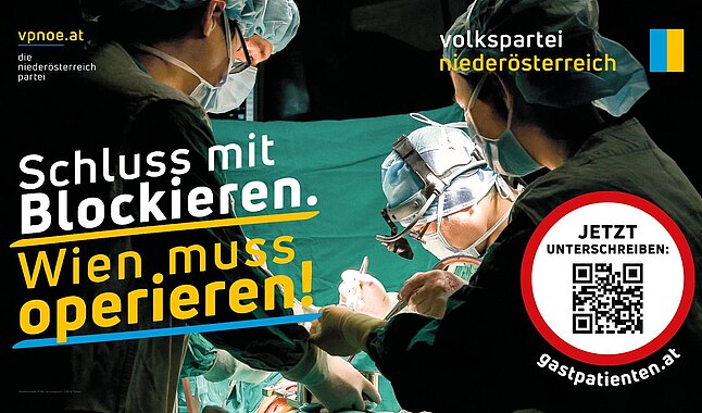 Die Volkspartei Niederösterreich erhöht in der Debatte um die Behandlung niederösterreichischer Patientinnen und Patienten in Wiener Spitälern die Schlagzahl und startet eine landesweite Kampagne mitsamt einer Unterschriftenaktion. „Seit Monaten sehen wir eine Entwicklung, die viele Niederösterreicherinnen und Niederösterreicher zurecht fassungslos und wütend macht. Immer öfter werden unsere Landsleute in Wiener Spitälern abgewiesen – nur weil sie aus Niederösterreich sind. Aus diesem Grund erhöhen wir mit dem heutigen Tag die Schlagzahl und starten als die Niederösterreich-Partei die Kampagne ‚Schluss mit Blockieren. Wien muss operieren!‘. Damit schaffen wir einen Schulterschluss mit allen Niederösterreicherinnen und Niederösterreichern, die auf einen gerechten Umgang mit unseren Landsleuten pochen wollen”, betont VPNÖ-Landesgeschäftsführer LAbg. Matthias Zauner. Teil der Kampagne sind eine eigene Website, eine Unterschriftenaktion sowie Informations- und Verteilaktionen im ganzen Land. „Unsere Landsleute haben es satt, als Patienten zweiter Klasse behandelt zu werden. Das unterstreicht eine aktuelle OGM-Kurier-Umfrage, in der 65 Prozent der Niederösterreicherinnen und Niederösterreicher die jüngste Klage eines Gastpatienten als den richtigen Weg empfinden. Spätestens jetzt sollte auch Herrn Hacker klar sein: Wir meinen es ernst mit unseren Ankündigungen und lassen die Niederösterreicherinnen und Niederösterreicher nicht im Stich. Es kann nicht sein, dass ausländische Staatsbürger mit einem Wiener Meldezettel behandelt werden, obwohl sie nie einen Cent ins System eingezahlt haben – tausende Niederösterreicherinnen und Niederösterreicher aber nicht. Wenn Herr Hacker Geld für die Wiener Stadtkasse sucht, dann kann er gerne das niederösterreichische Sozialhilfemodell kopieren. Wien würde sich damit rund 300 Millionen Euro sparen”, so Zauner. Der Gesundheitssprecher der Volkspartei Niederösterreich, LAbg. Franz Dinhobl, ergänzt: „Niederösterreich verzichtet jährlich auf 500 Millionen Euro, um die Behandlung von unseren Landsleuten sicherzustellen. Das ist kein freiwilliger Akt und keine Kulanz, sondern eine klare Verpflichtung. Erst 2023 hat Bürgermeister Ludwig im Rahmen des Finanzausgleichs seine Unterschrift unter die Gastpatienten-Regelung gesetzt. Über 200.000 Niederösterreicherinnen und Niederösterreicher pendeln jeden Tag nach Wien und erwirtschaften täglich Einnahmen für die Stadt in Millionenhöhe. Wir erwarten uns daher, dass Wien die Gesundheitsversorgung nicht vom Meldezettel abhängig macht und Herr Hacker seine herzlose Haltung der vergangenen Monate aufgibt. Aus der Bundeshauptstadt braucht es ernstgemeinte Lösungsvorschläge und keine durchschaubaren Nebelgranaten.” “Unsere Landsleute erwarten sich eine Klärung der Fragen. Diese wird entweder am Verhandlungstisch oder vor Gericht erfolgen. Was es jetzt braucht, ist ein Schulterschluss mit allen Gastpatientinnen und Gastpatienten. Deshalb laden wir alle Niederösterreichinnen und Niederösterreicher ein, unsere Petition mit ihrer Unterschrift zu unterstützen und sagen in aller Deutlichkeit: Schluss mit Blockieren, Wien muss operieren”, so Zauner und Dinhobl abschließend. Nähere Informationen, weitere Zahlen und Fakten sowie die Möglichkeit, diese Petition zu unterschreiben, sind unter www.gastpatienten.at zu finden.